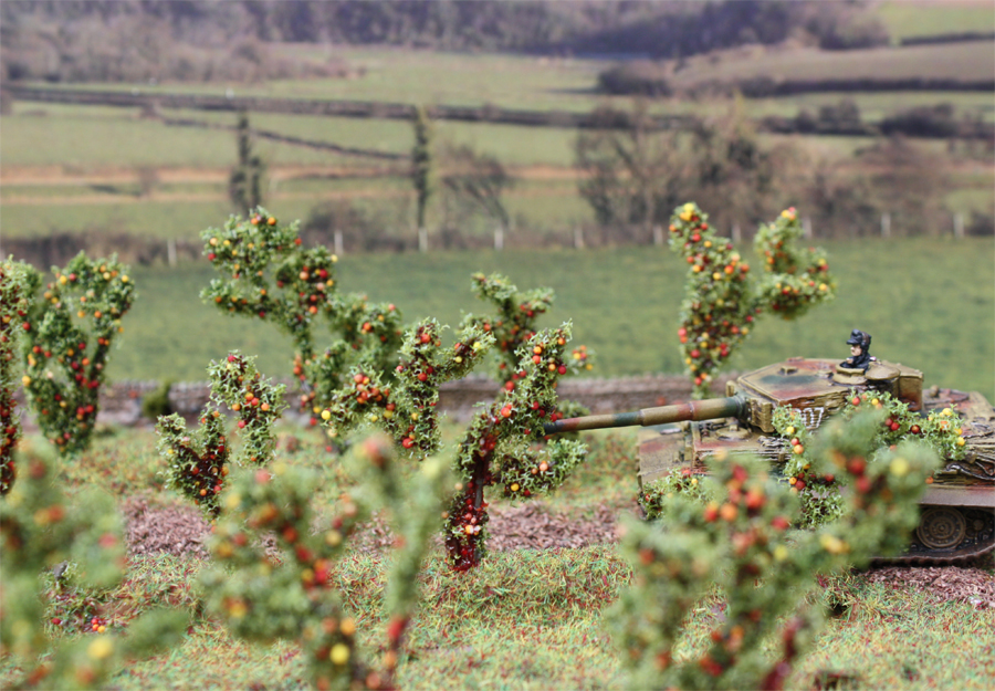 orchard, most of the Normandy farm, telegraph poles and bits.