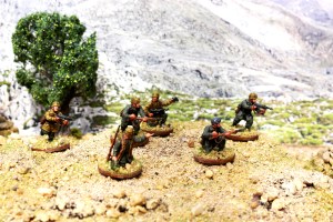 I have now painted up a small squad of Warlord Games figures. These figures are labelled mid-late war by Warlord Games but as long as you ensure they have the right weapons for the period they can easily fit it. At the time of the invasion of Crete new uniforms were starting to come through to the troops on the ground, specifically camouflage tops and helmet covers. There are lots of pictures of Germans on Crete wearing mixed uniform. Please note I have not confused the later pictures of occupation troops wearing camouflage which is a common mistake, often made.