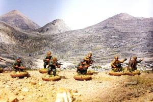 The figures I have used are a mixture of manufacturers. I have used 1st Corps, Foundry and Crusader and a few from Warlord Games. The first three manufacturers specialize in early war troops and I have included a few Warlord Games figures(they only provide mid-late war figures) to show the tiny emergence of different uniforms that started to appear in small numbers on Crete.