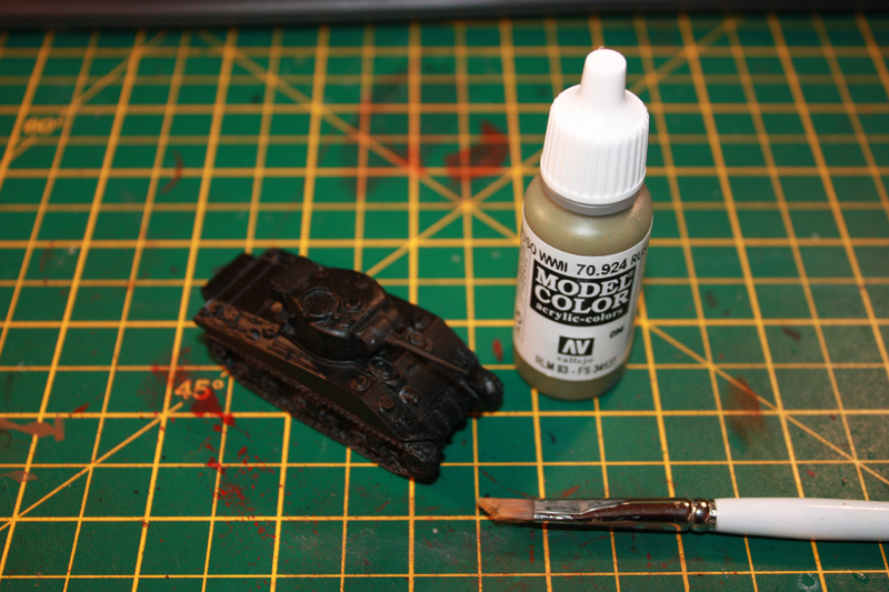 Step 3 : With a flat brush gently brush on Vallejo 924