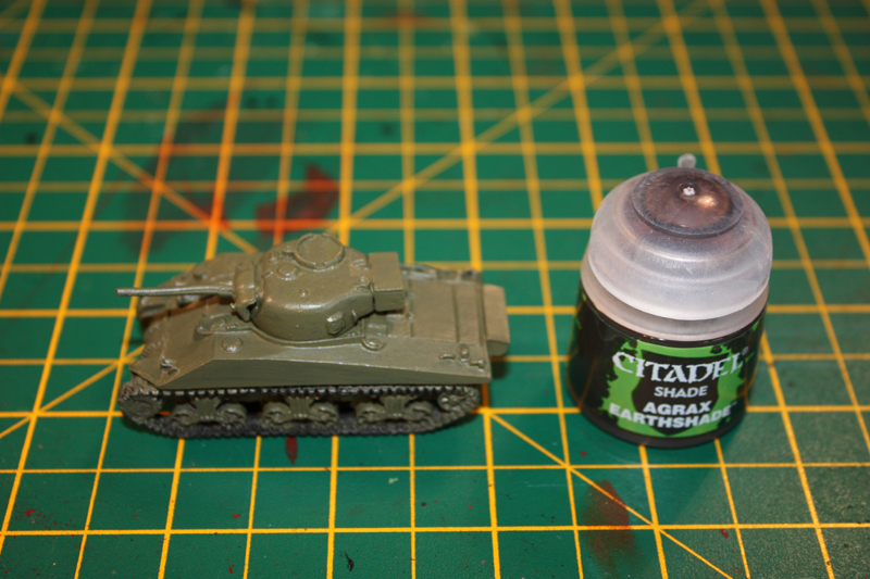 Step 6: GW Agrax wash(basically a black wash). Gently put