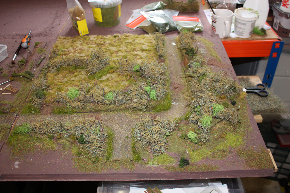 My terrain boards are 610 x 610 in size, which fit nicely on most tables